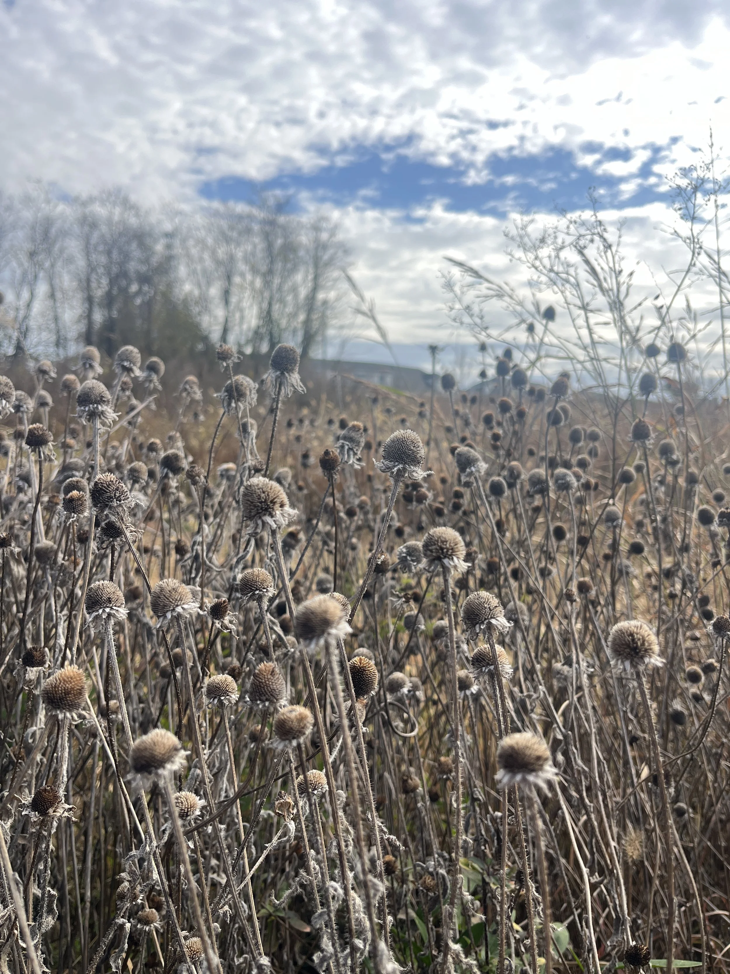 We created a three-acre meadow by first removing invasive turf grasses that dominated the site and limited ecological value. Once cleared, we seeded the area with a carefully selected mix of native species adapted to xeric conditionsβplants that thrive in dry, low-fertility soils.