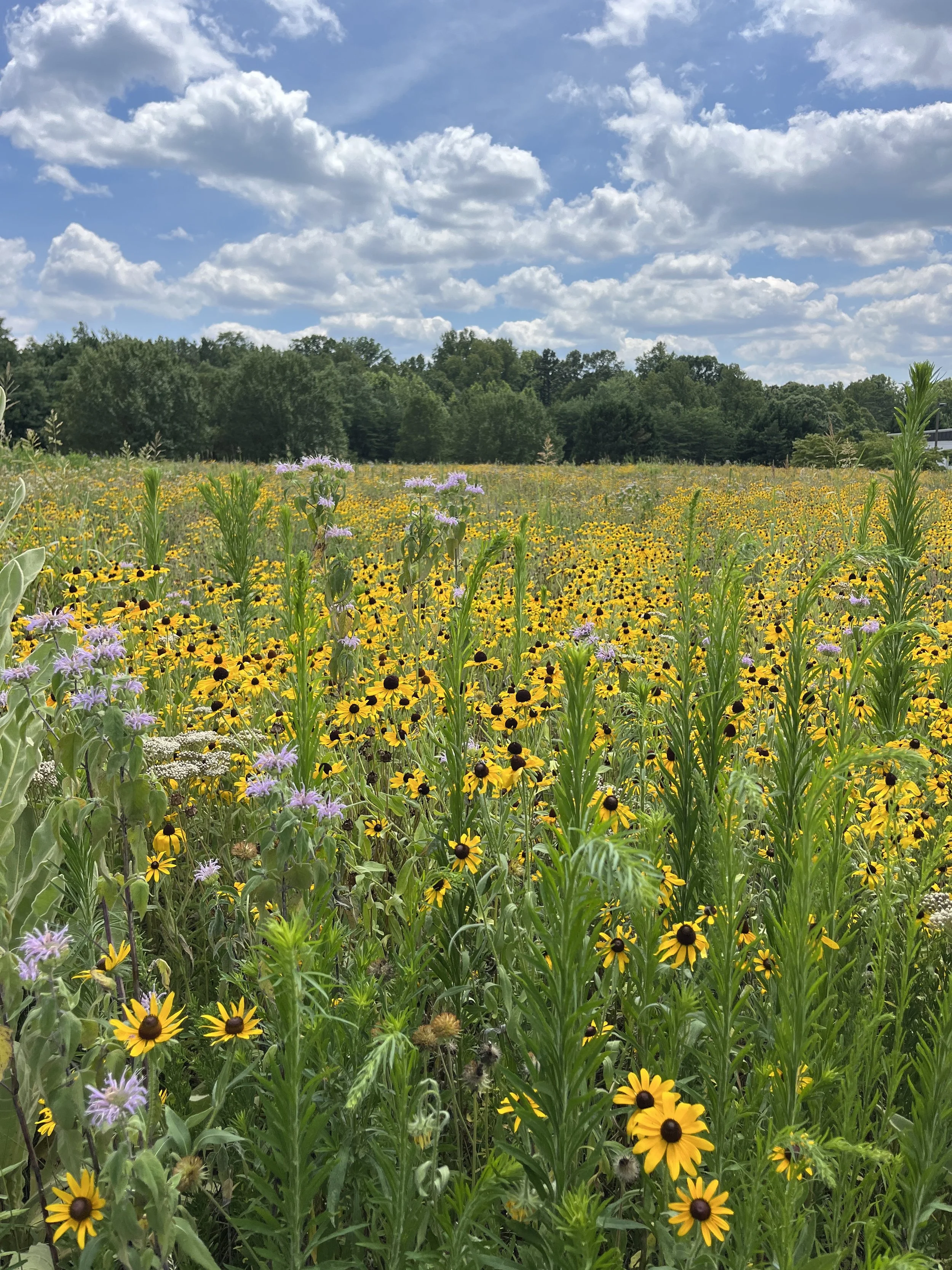 Now, this meadow not only supports pollinators and wildlife but also establishes a resilient plant community that requires minimal maintenance, conserves water, and naturally suppresses invasive plants over time. The result is a thriving meadow that reflects the natural character of the landscape while restoring biodiversity and beauty to the site.