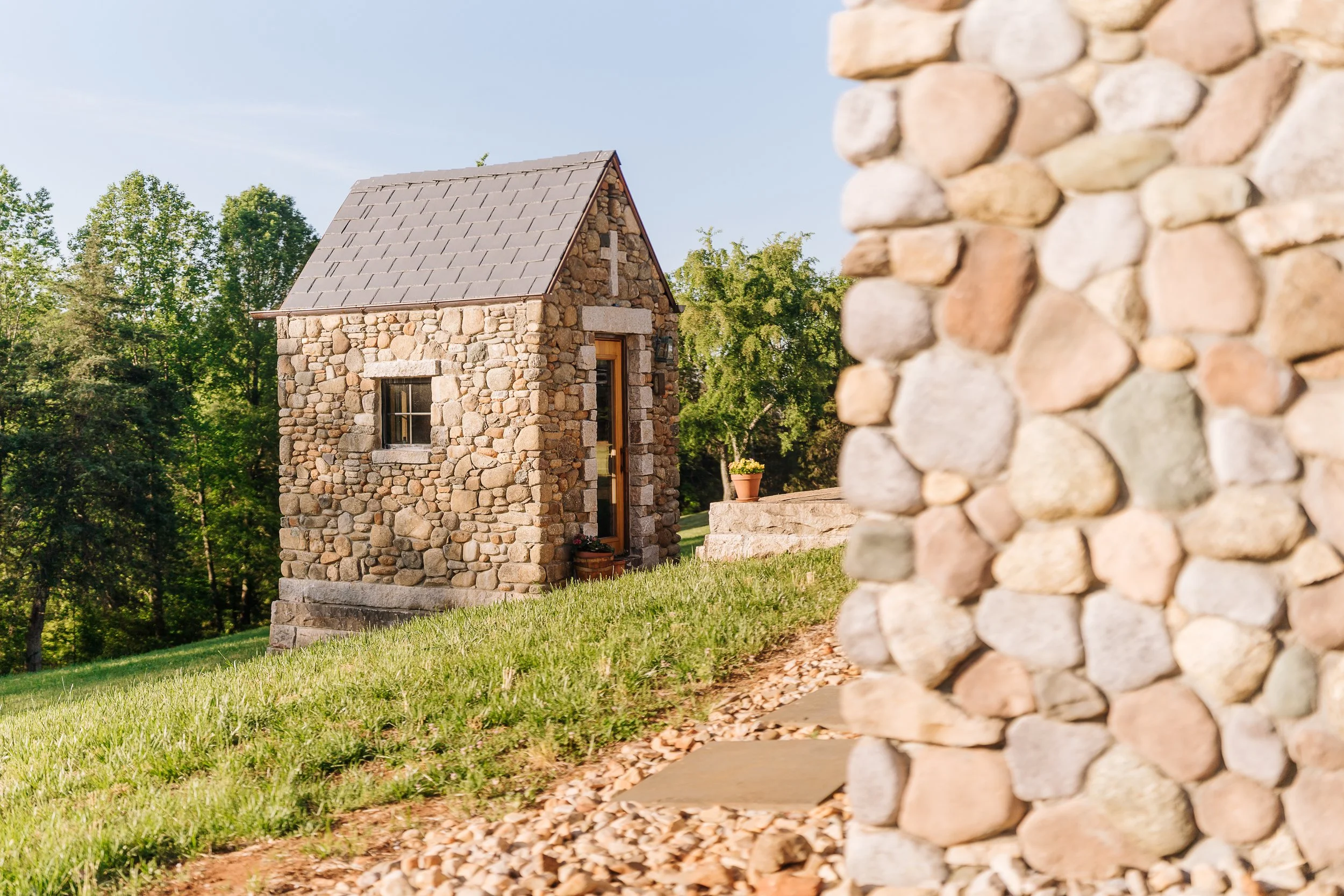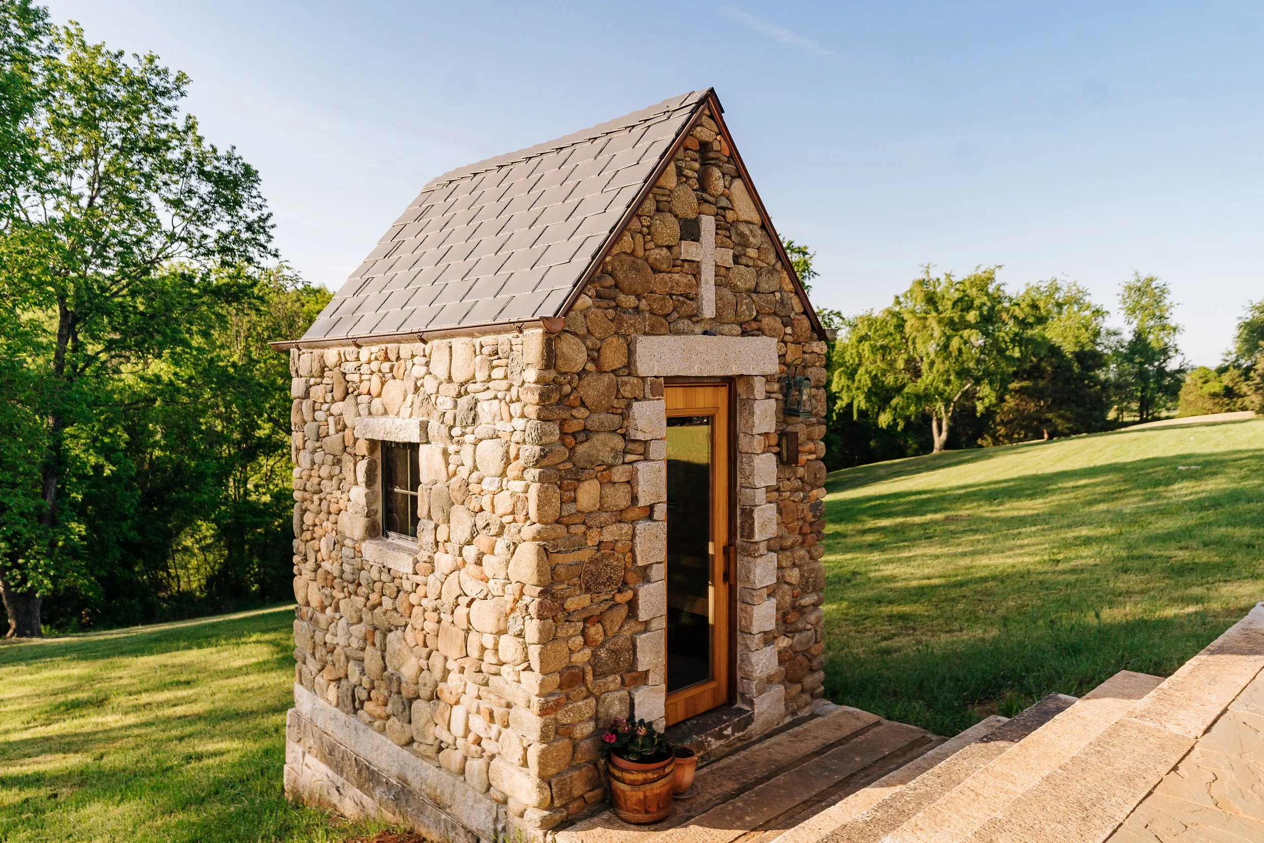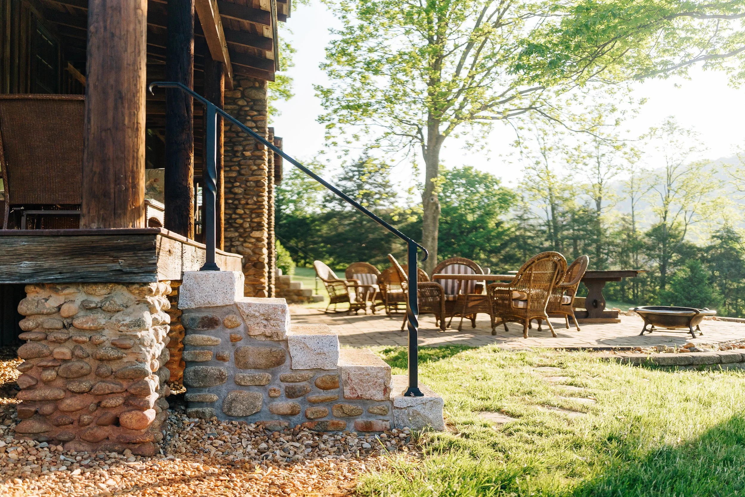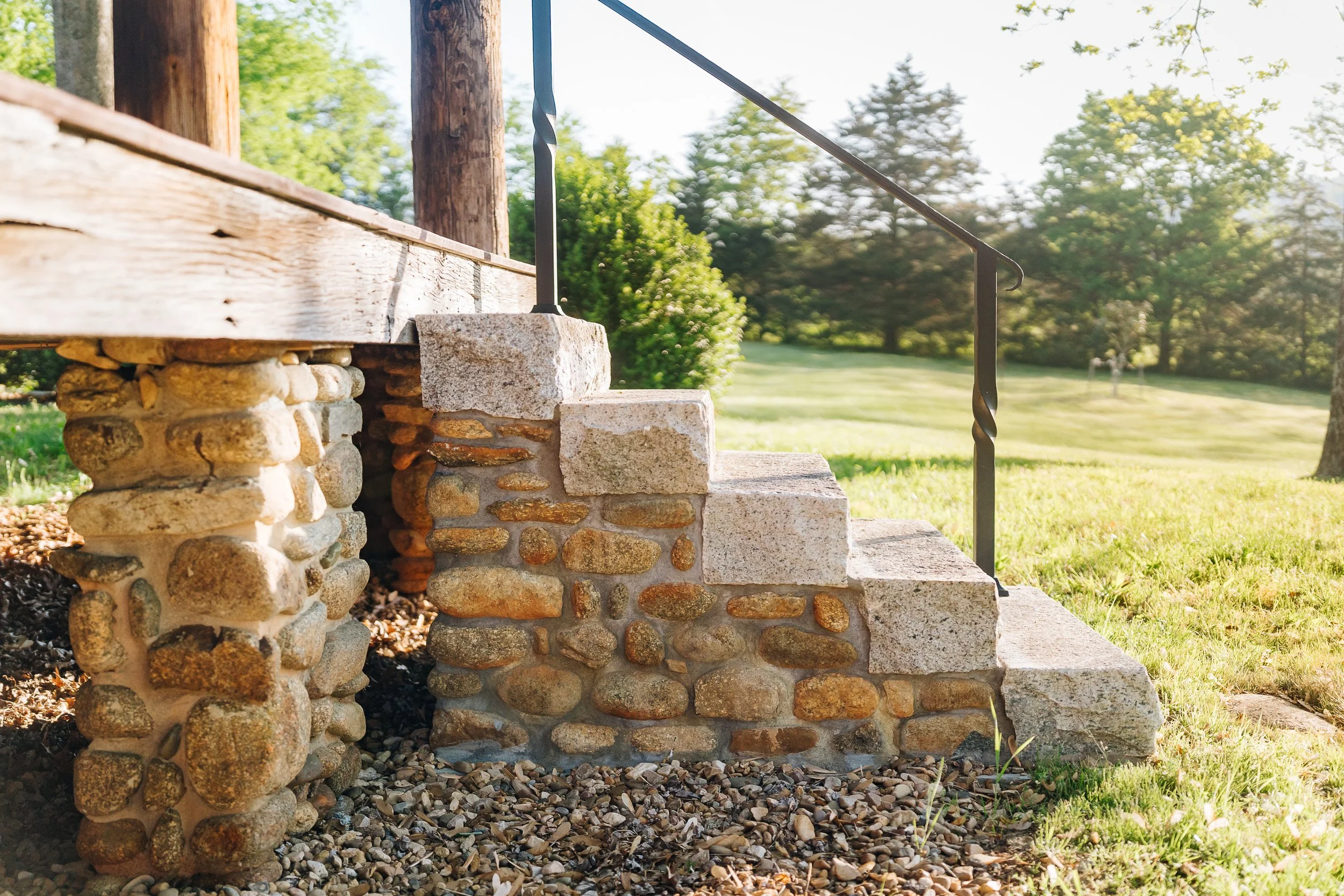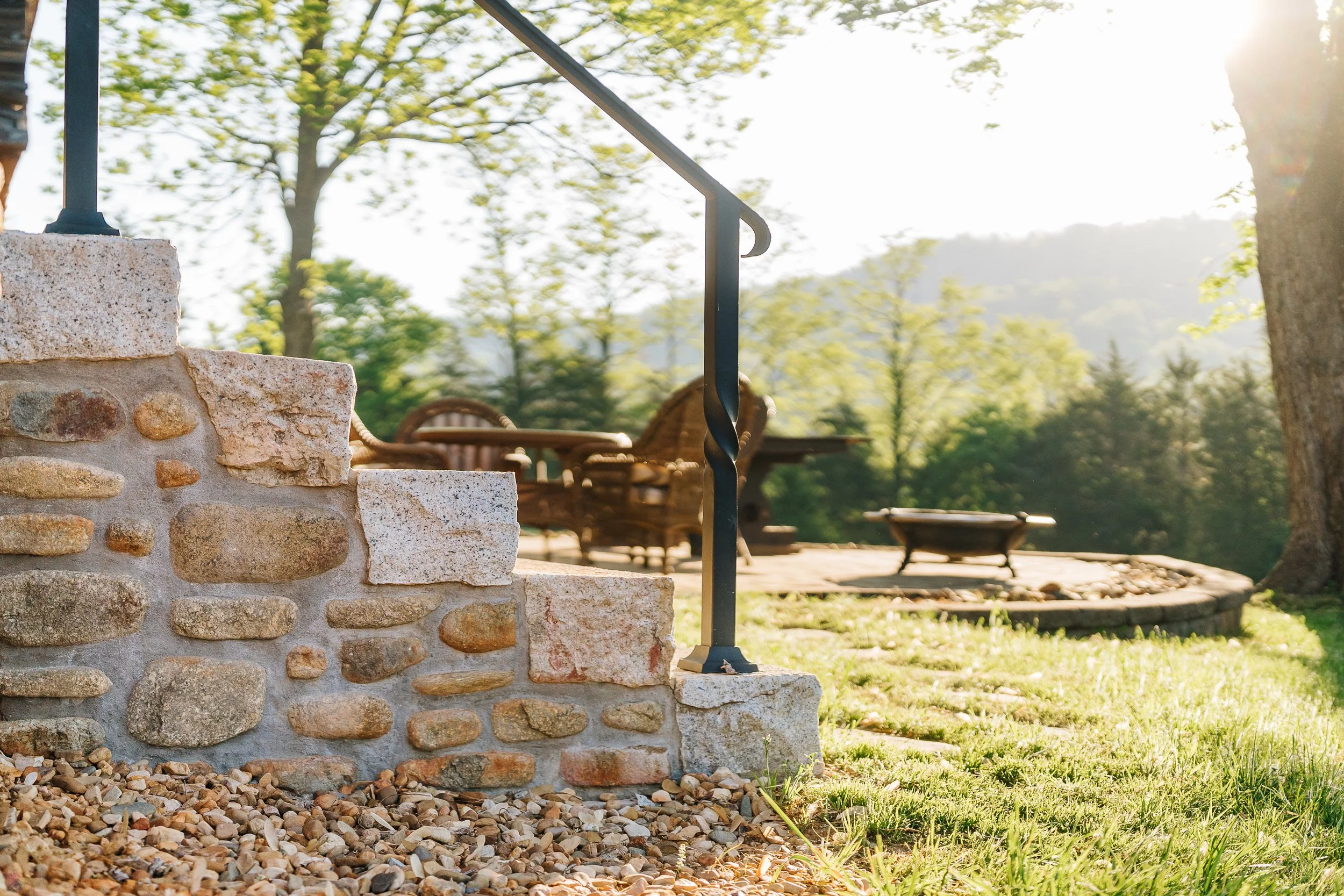 A long term project and collaboration with the Woodsmallβs lodge and retreat in the mountains of Nelson County. We built stone foundations, steps, patios, and a very special sauna.